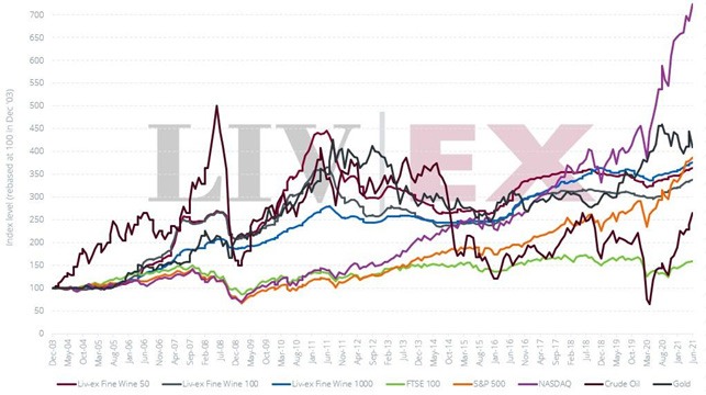 Fine vine har over tid vist sig at være en ret solid investering. Når man kigger på perioden fra ultimo 2003 og frem til sommeren 2021 er investeringsvine kun overgået af topaktier og guld, og har klaret sig bedre end både råolie, FTSE 100, som er aktieindeks bestående af de 100 børsnoterede selskaber på London Stock Exchange med den største markedsværdi, og S&P 500, som er det gældende aktieindeks over 500 store amerikanske virksomheder repræsenteret bredt over alle amerikanske industrier.
