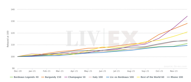 De områder og vine der er mest oplagte til vininvestering er dem vi kalder 4B+C: Bourgogne, Bordeaux, Barolo, Brunello og Champagne. Af dem har særligt Champagne og Bourgogne klaret sig særdeles godt de sidste år (se figur 3).